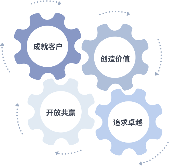 成就客户是一切决策的出发点,创造价值是衡量所有工作的标准,追求卓越是球盟会·qmh做事做人的态度,开放共赢是球盟会·qmh的格局也是最终的结果。价值观的齿轮环环相扣,推动着组织里的每个人不断向前。